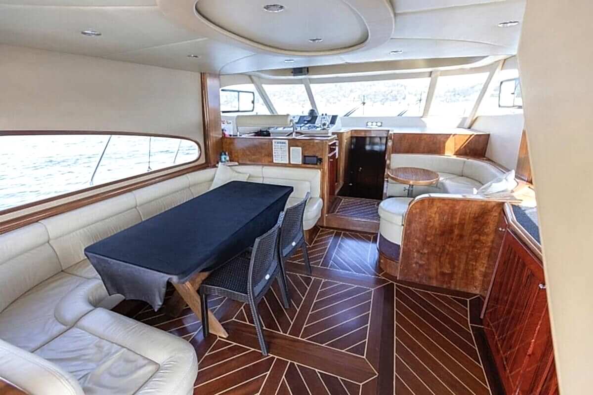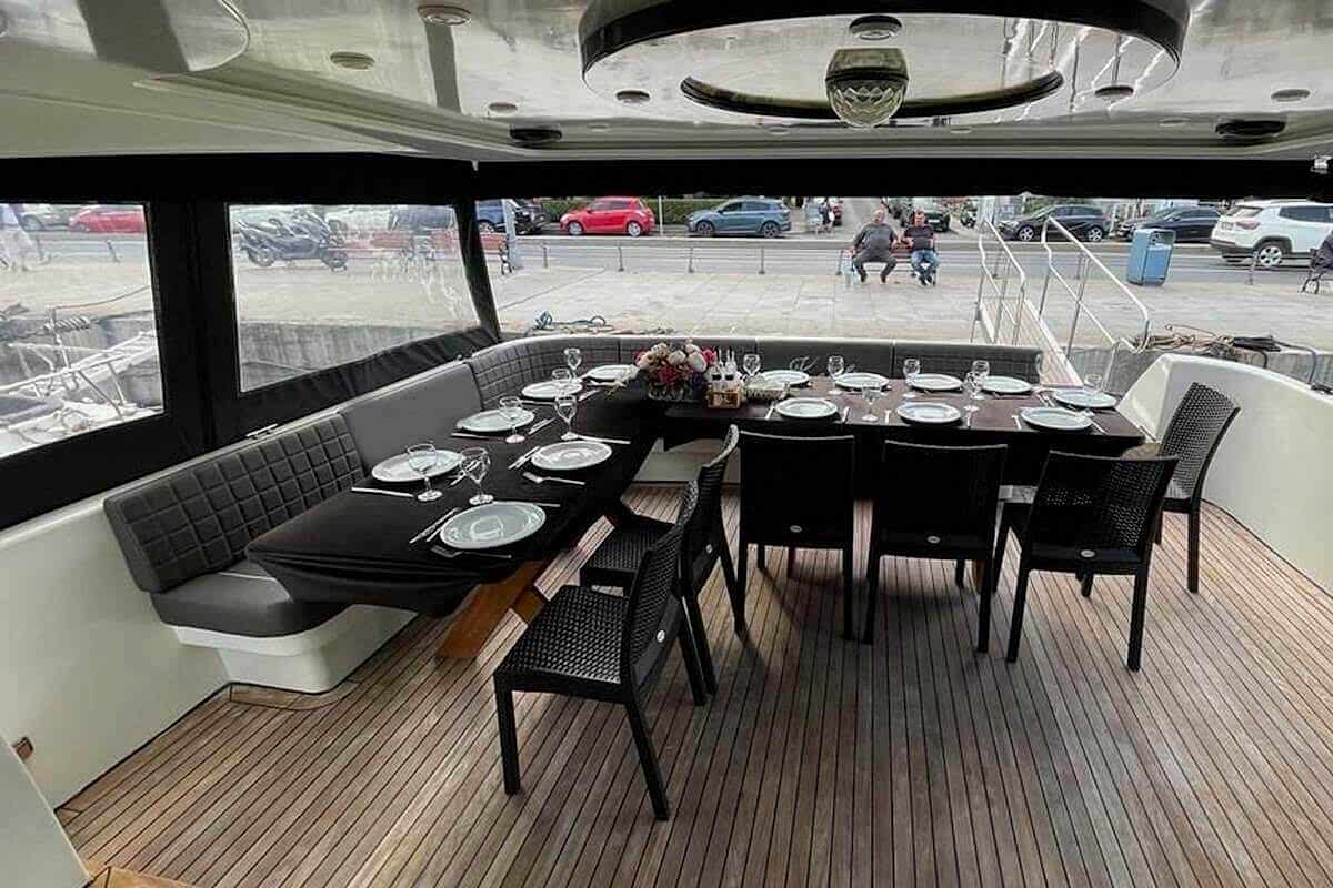 Geniş güvertesi, Boğaz'ın güzelliğini özgürce hissetmenizi sağlar. Kapalı alanı ve ısıtma sistemi sayesinde dört mevsim konforlu kullanım sunar. Bluetooth ve USB destekli ses sistemiyle kendi müziğinizi yanınızda getirebilir, teknenin ritmini siz belirleyebilirsiniz.