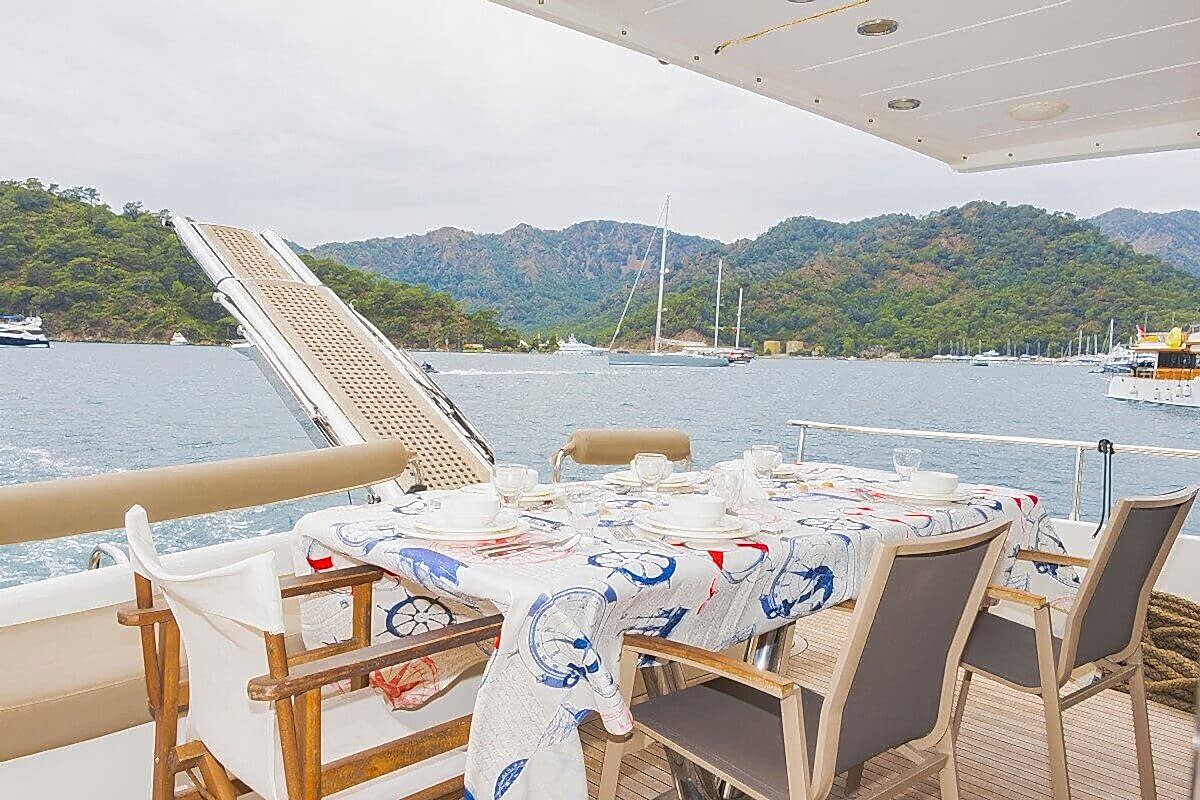 Yatın geniş güvertesi, manzaranın tadını çıkarmak isteyen misafirler için ferah bir alan sunar. İç salon ve kapalı alanlar yazın serin, kışın sıcak tutacak şekilde donatılmıştır. Bluetooth ve USB uyumlu ses sistemi sayesinde kendi müziğinizi getirebilir, Boğaz'ın ritmini kendiniz belirleyebilirsiniz.